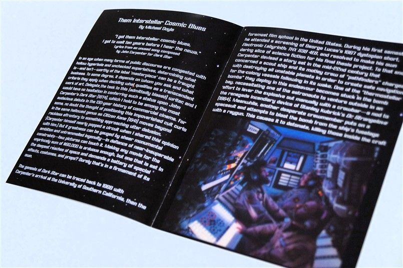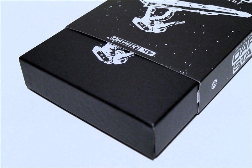 Tipo de estuche: Funda/faja con rótulos satinados recubriendo boxset de cartón rígido con contraportada limpia, albergando en su interior sobre de cartón contenedor de parche cosido, 8 postales réplicas imágenes publicitarias originales, réplica del dosier de prensa original, póster reversible, libreto réplica del utilizado en el film de 12 páginas y libreto de 16 páginas con fotografías en información del film (textos en inglés) y estuche plástico con 2 discos (bd+uhd). Limitada a 500 unidades no numeradas.